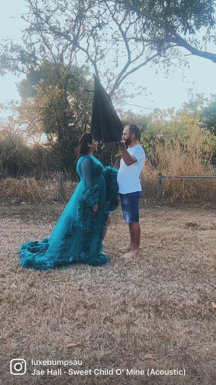 Maternity Photoshoot Dresses - Teal Tulle Robe - Lola